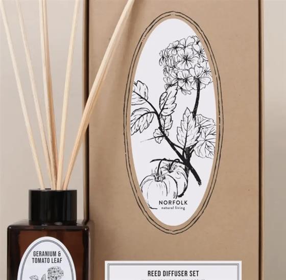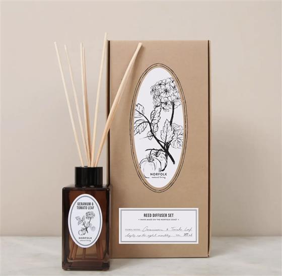Bring a touch of luxury to your home with Norfolk Natural Livings beautifully crafted Reed Diffuser, designed to fill your space with a long-lasting, elegant fragrance. Choose from their garden-inspired scents: Geranium and Tomato Leaf, Basil & Neroli, or their Coastal Walks fragrance.