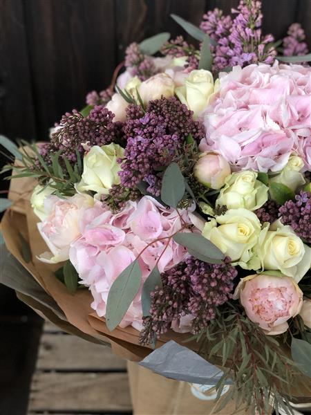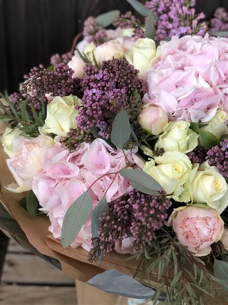 An extravagant hand tied bouquet bursting with beautiful blooms. This is a florists choice bouquet so we will choose the best blooms for you on the day. However if you have any particular flower or colour requests please mention these in the delivery instructions.