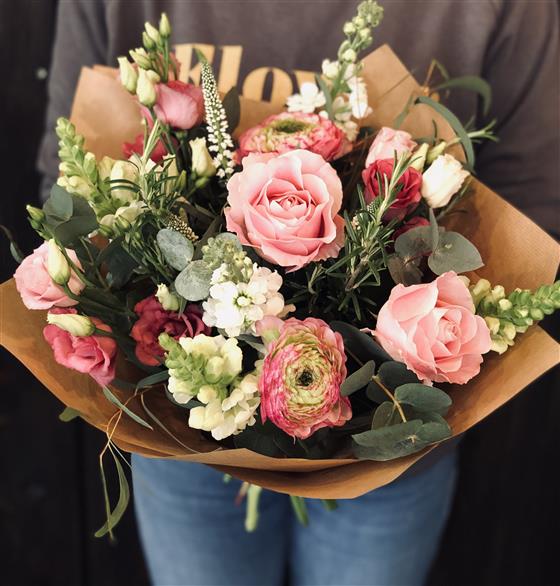 A gorgeous hand tied bunch with open stems…..colours and flowers will vary but we promise we will choose our best blooms for you!