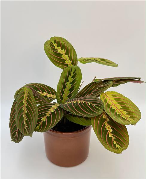 Bring warmth and pattern into your home with our Maranta Leuconeura, admired for its strikingly patterned leaves and soft, trailing growth. Standing at approximately 30cm tall, this eye-catching plant adds colour and interest to shelves, side tables or desks.