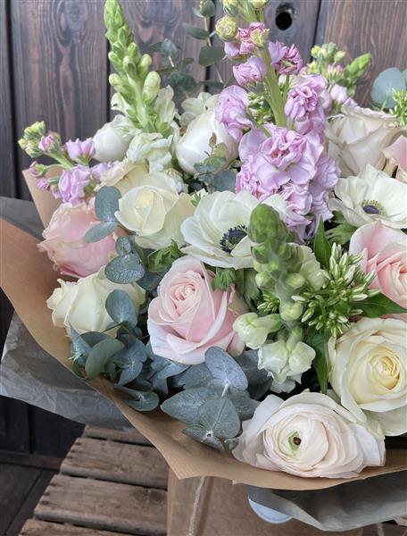 This abundant bouquet is full of luxury large headed roses, scented stocks, antirrhinums, anemones, and phlox arranged amongst scented eucalyptus and other mixed foliages. A stunning present for your lovely Mum this Mothers Day.
