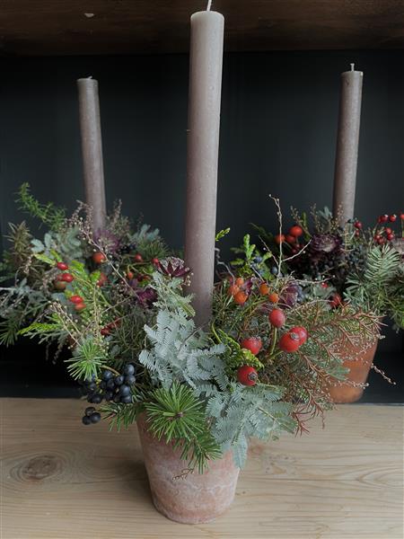 A trio of Christmas arrangements in vintage terracotta pots. Perfect for displaying along the length of yiur Christmas table or to adorn your mantelpiece. 🌲